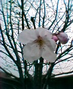 近所の桜の木に桜が一輪。